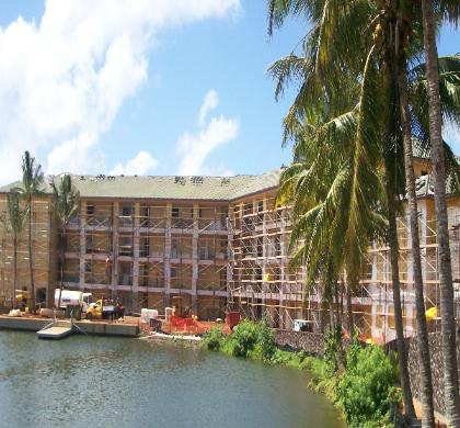 | Located adjacent to the Marriott Kauai Lagoons, Kalanipu'u condominiums and timeshares are offered in 78 elegant two, three, and four bedroom floor plans in three multi-story buildings. Kauai Lagoons is a Marriott resort, which include hotel accommodations, small community of condominium/timeshare projects, and single family homes. Notkin Hawaii Inc. provided engineering design services for air conditioning, ventilation, plumbing, and fire protection systems. |